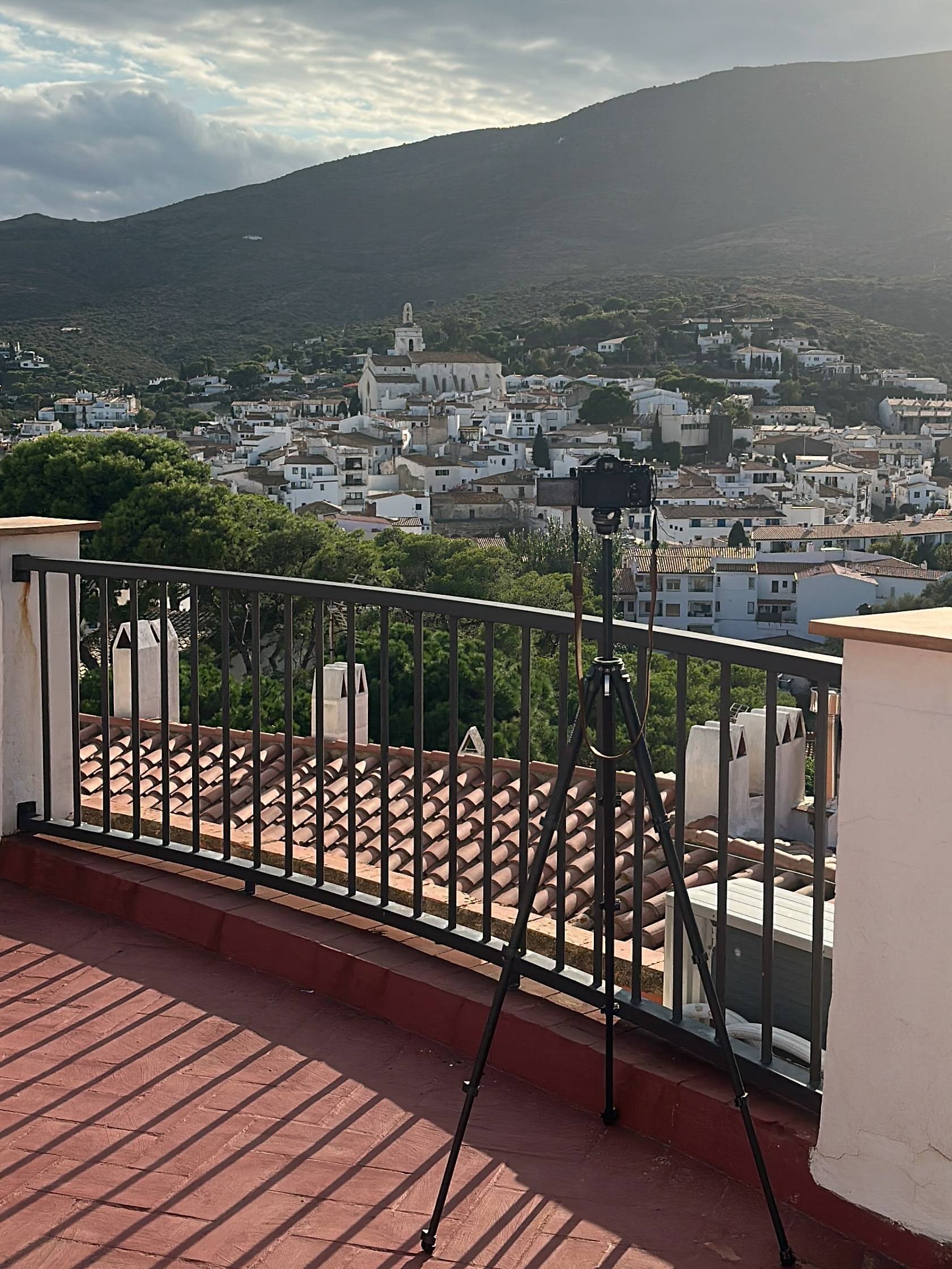 The tripod in the setup shot was mainly for video, but it gave me the extra height I needed to clear the rooftop clutter.